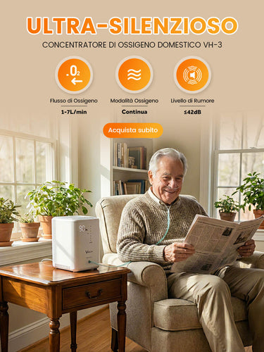 - Serie VH: modelli silenziosi e affidabili, progettati per soddisfare le esigenze di terapia ossigeno a domicilio.