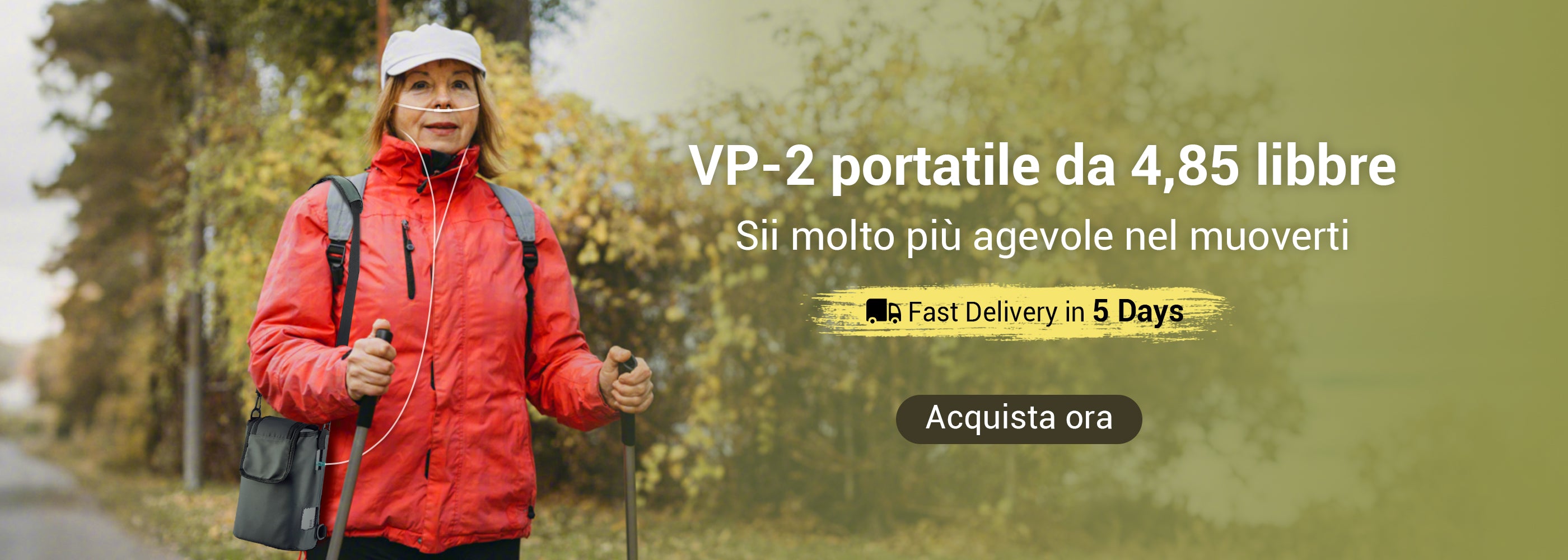 Serie VP: Unità portatili affidabili con maggiore concentrazione di ossigeno, ideali per chi necessita di un supporto ossigeno costante in movimento.