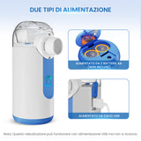 La nostra nebulizzatrice supporta due fonti di alimentazione: batteria alcalina (non inclusa) o USB. Nota: questa nebulizzatrice può funzionare con alimentazione USB, ma non può essere ricaricata.