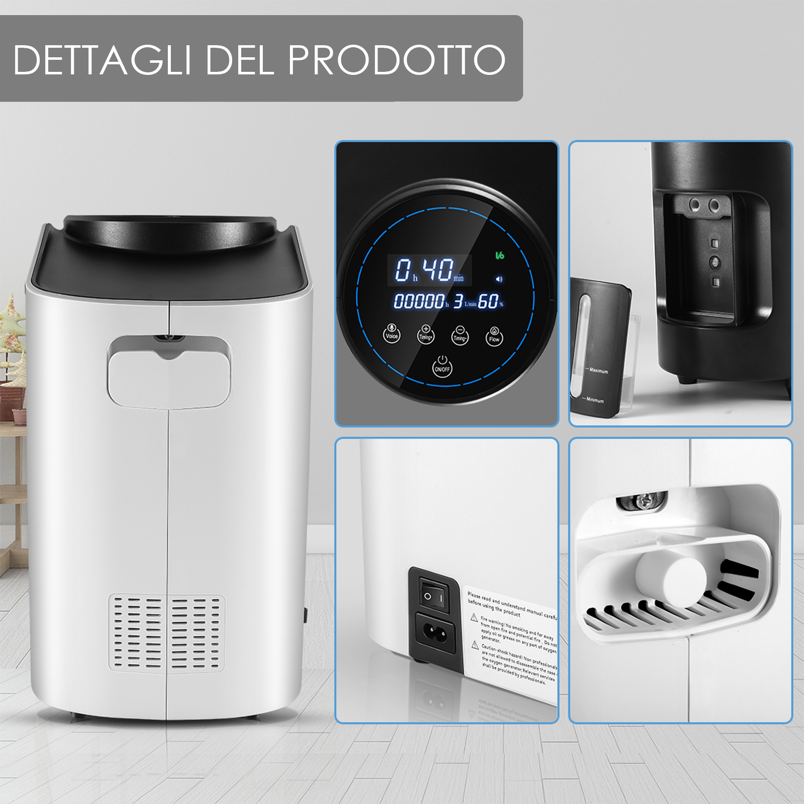 - Concentrazione di ossigeno: 30%-90%