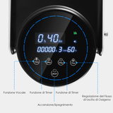 Flusso di ossigeno continuo regolabile da 1 a 7 litri, con concentrazione massima fino al 90%.